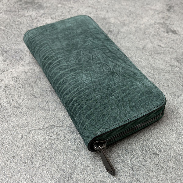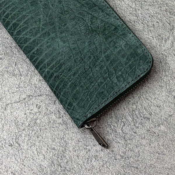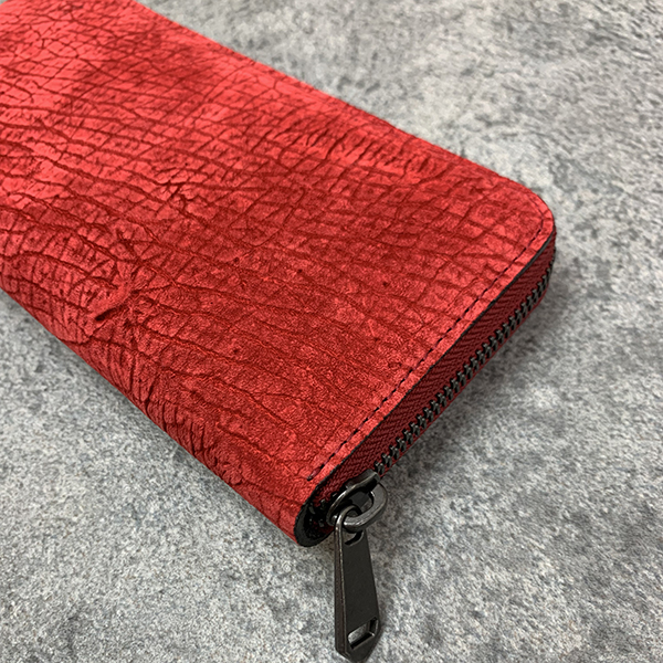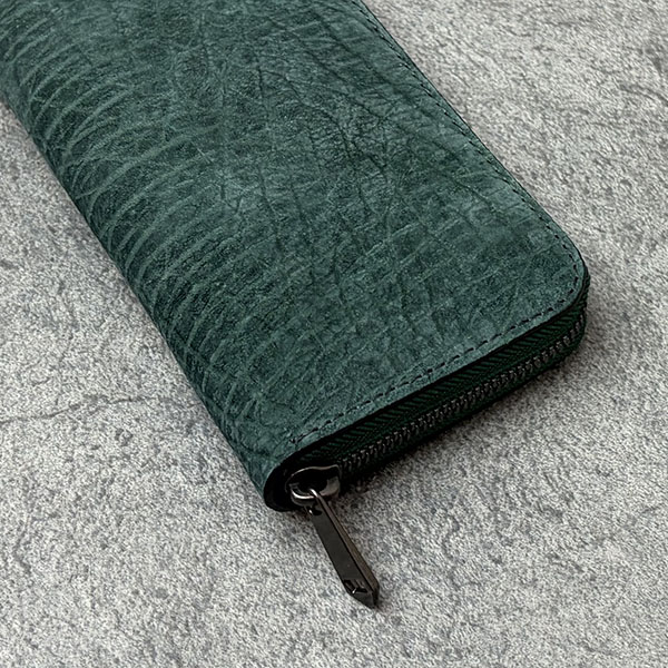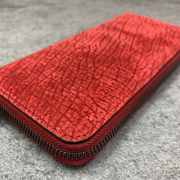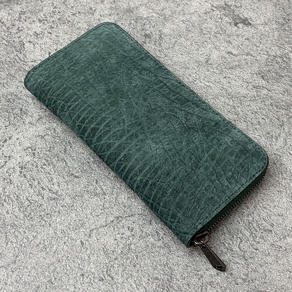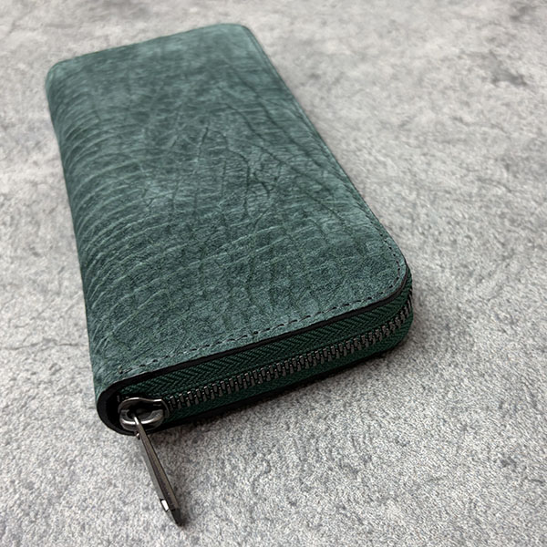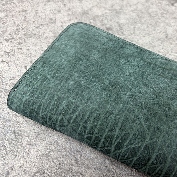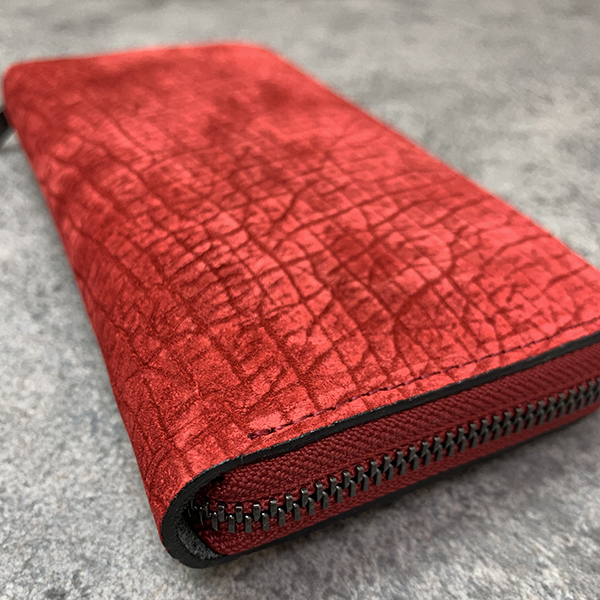 カバ革は起毛革のような高級感のある手触りと、耐久性にも優れ使い込むことで増す艶は他の革とは一味違う経年変化を見せてくれます。